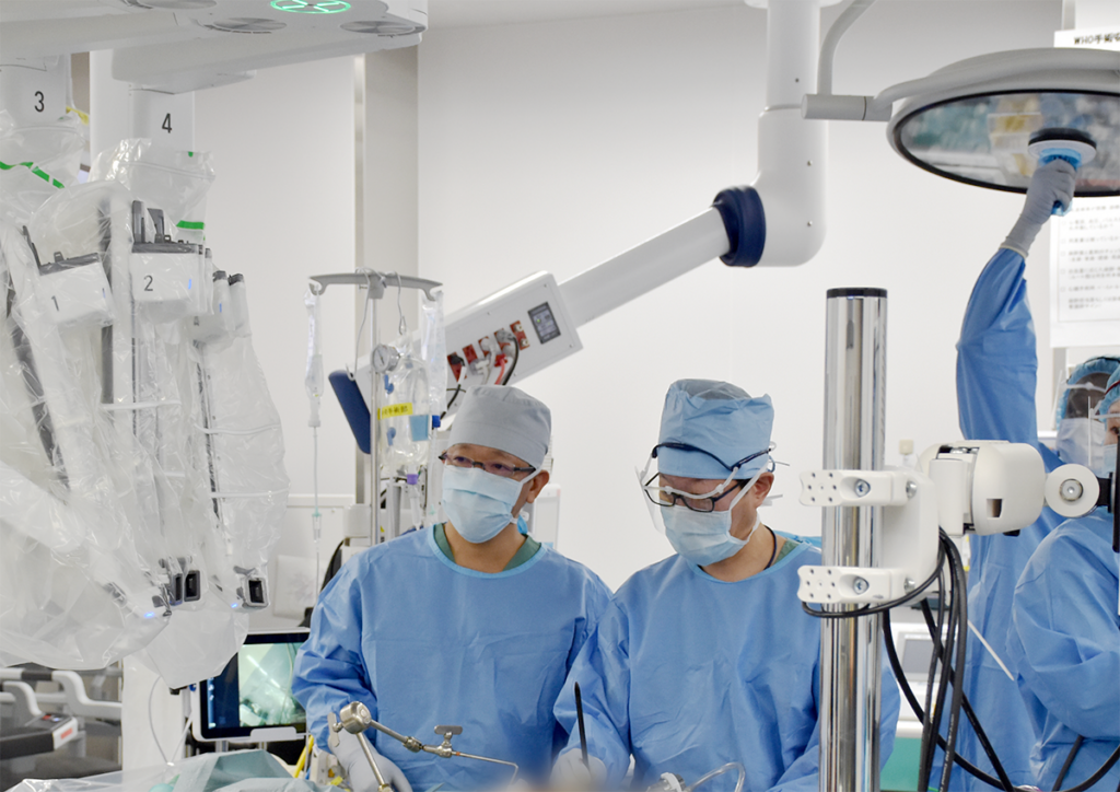 三重大学病院の消化管外科には、現在、日本ロボット外科学会が認定するロボット手術国内A級専門医が1名、国内B級専門医が1名おり、進行がん、食道胃接合部がんなどを対象とした難易度が高い症例においても多くの実績があります。