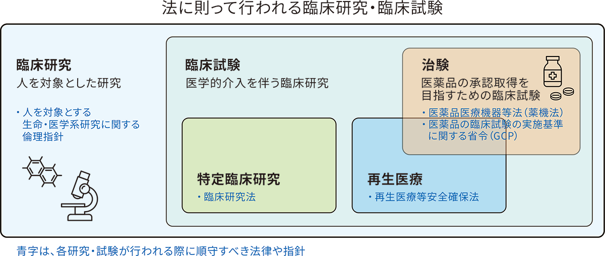 医療に関わる研究には様々な種類がありますが、中でも人を対象とした研究のことを「臨床研究」といいます。