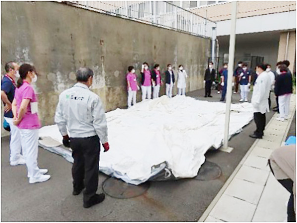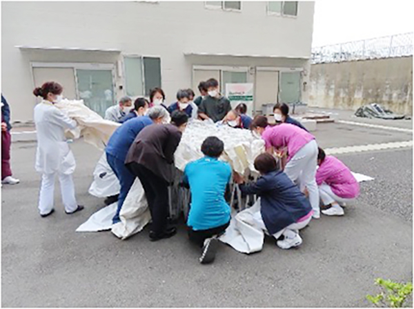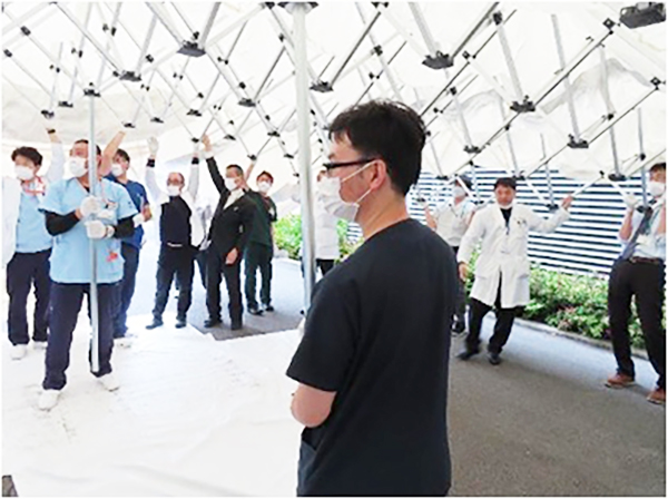 しかし、こうしたテントは非常に大型で、慣れていないと展開するのは簡単ではありません。そこで、当院では、実際の場面でスムーズに展開できるように、平時から手順の確認を含む練習も行っています。