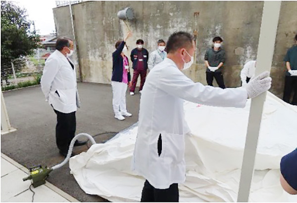 今回の所要時間は災害テント25分、除染テント10分程度でしたが、練習を積むことによってもっと早く展開できるようになります。