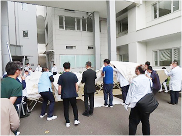 当院は、大型の災害テントと除染テントを1張りずつ保有しています。